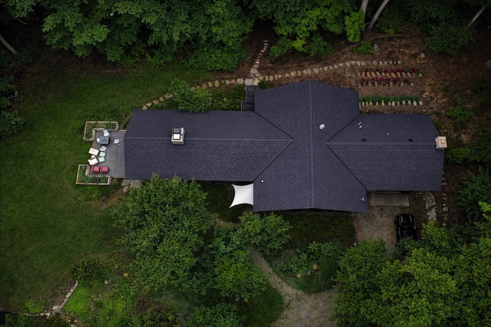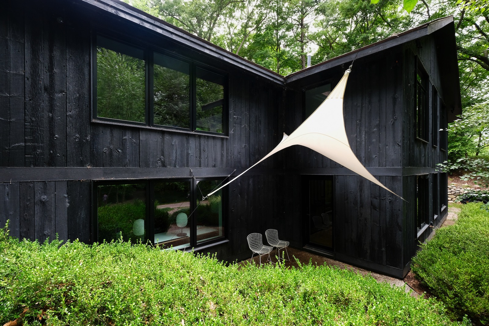 The “Woodland Hide-a-way” is a bespoke retreat that marries Northern European design sensibilities with the rustic allure of its woodland surroundings. Inside, the exposed timber framing, expansive windows, and a quintessential brick fireplace create a cozy yet sophisticated ambiance. The kitchen and dining areas offer a sleek, contemporary touch with high-quality finishes. Outside, the home boasts a stunning covered porch that provides an idyllic setting for relaxation and entertainment amidst nature’s tranquility.